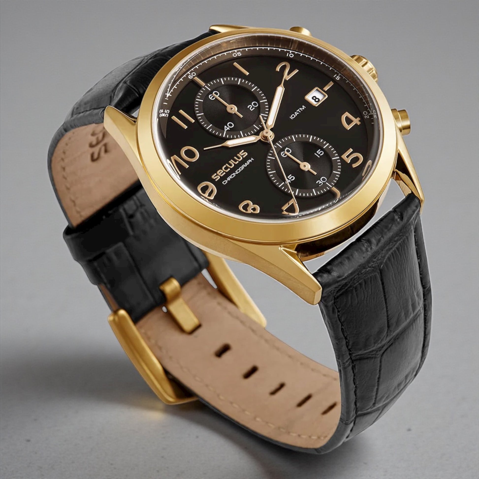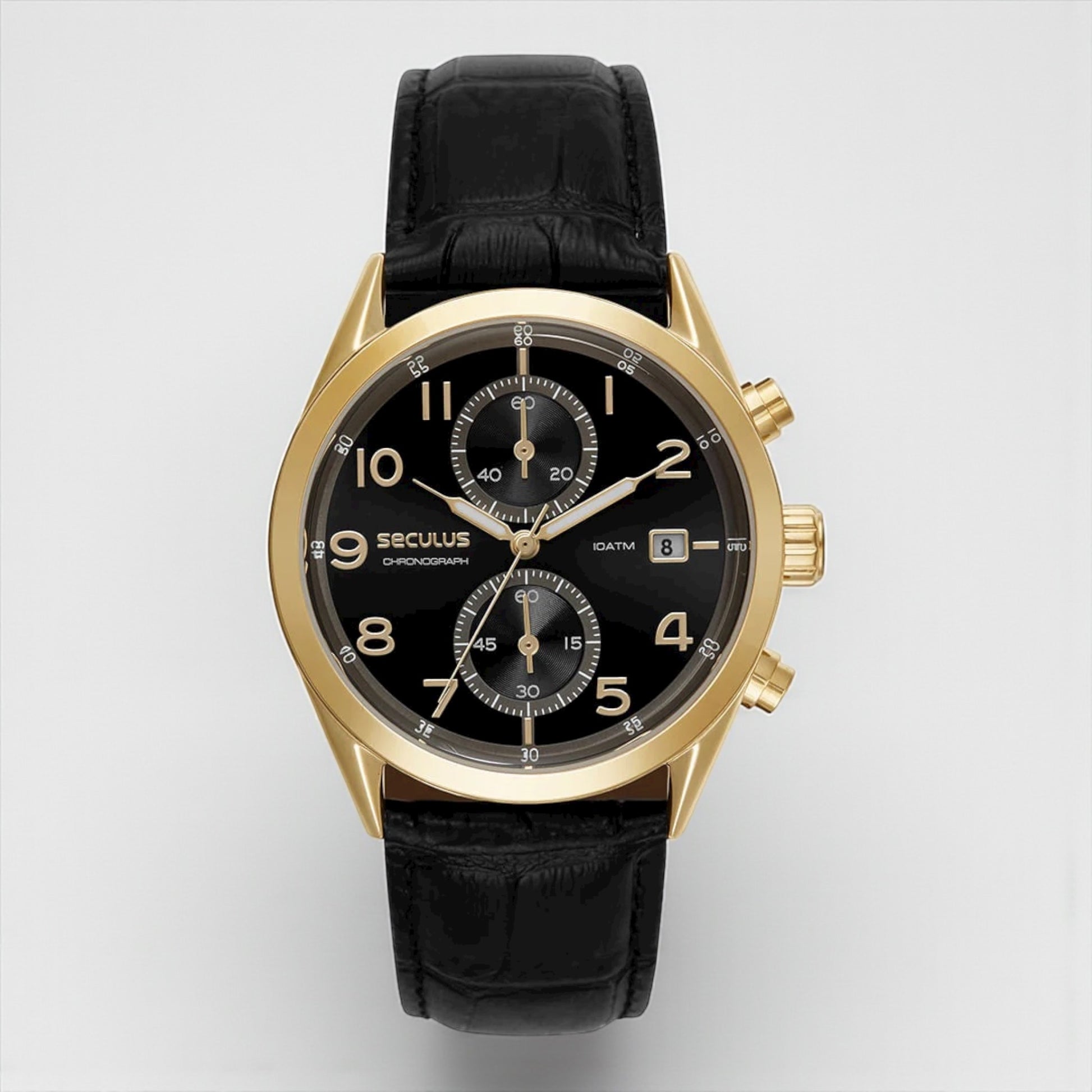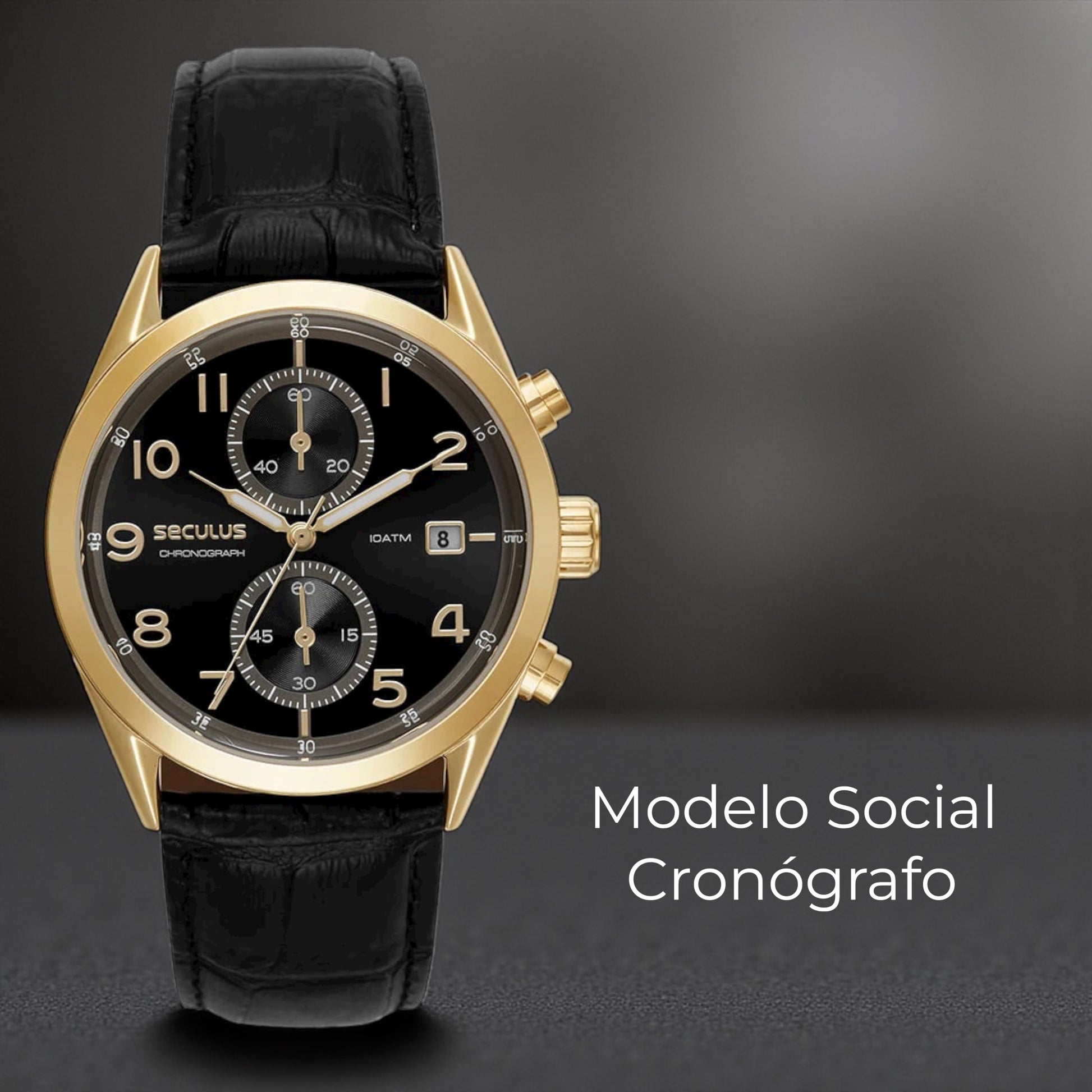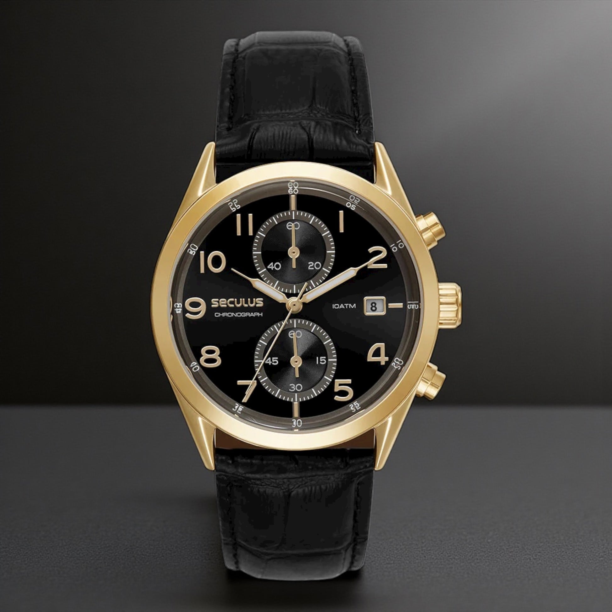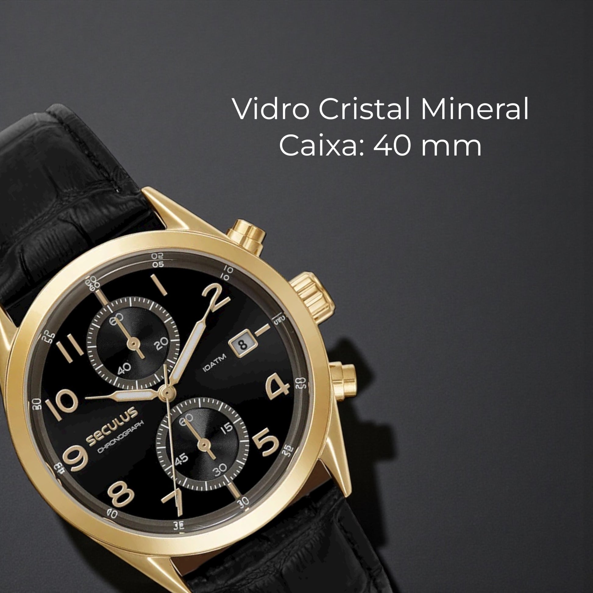 Relógio Seculus Masculino Cronógrafo Couro Preto 40mm – Elegância e Desempenho em Um Só Relógio