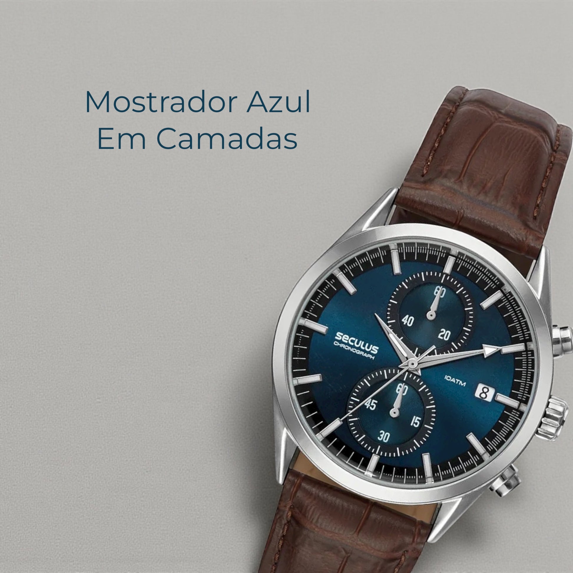 Garanta o seu Relógio Cronógrafo Dourado com Mostrador Azul e descubra o equilíbrio perfeito entre design, desempenho e distinção.