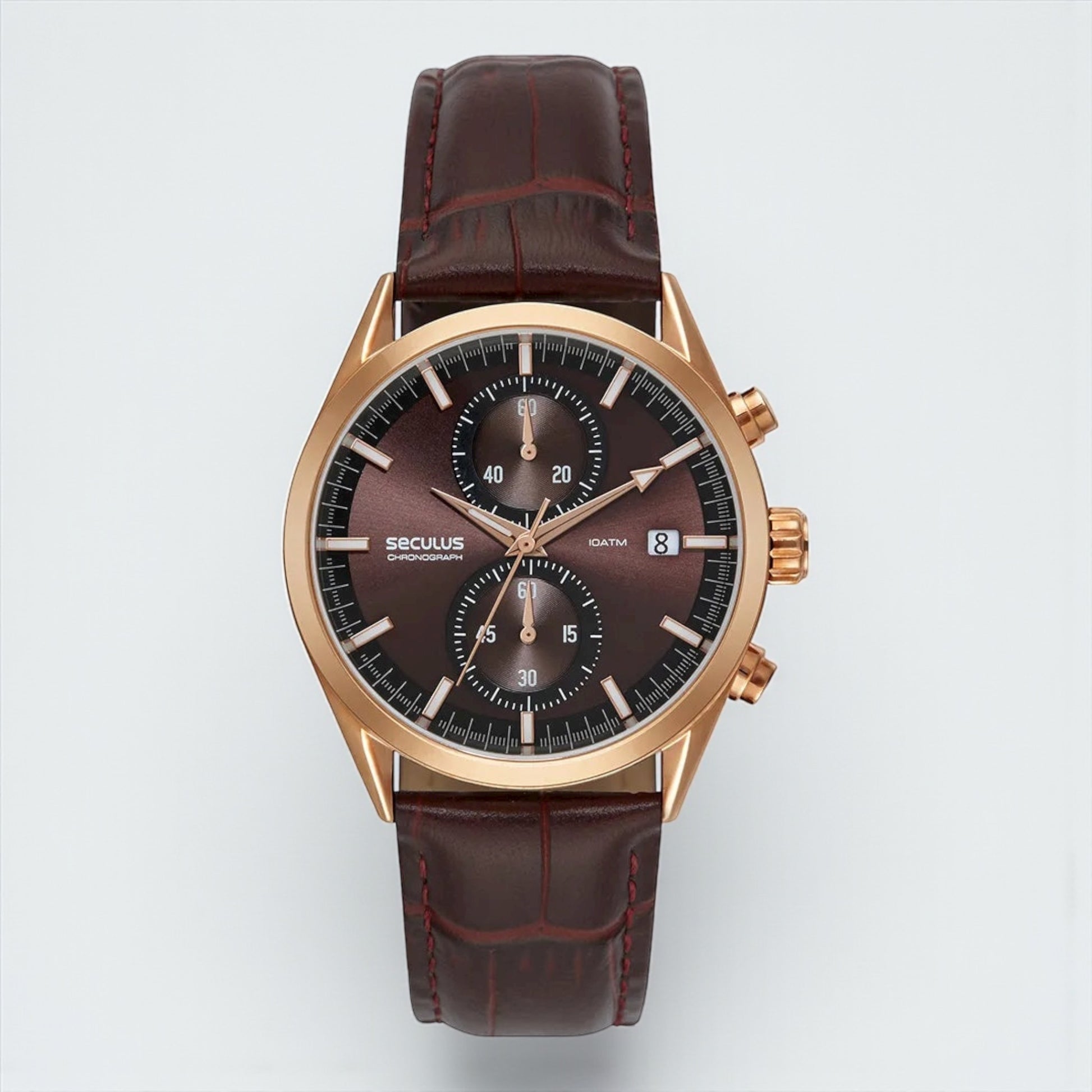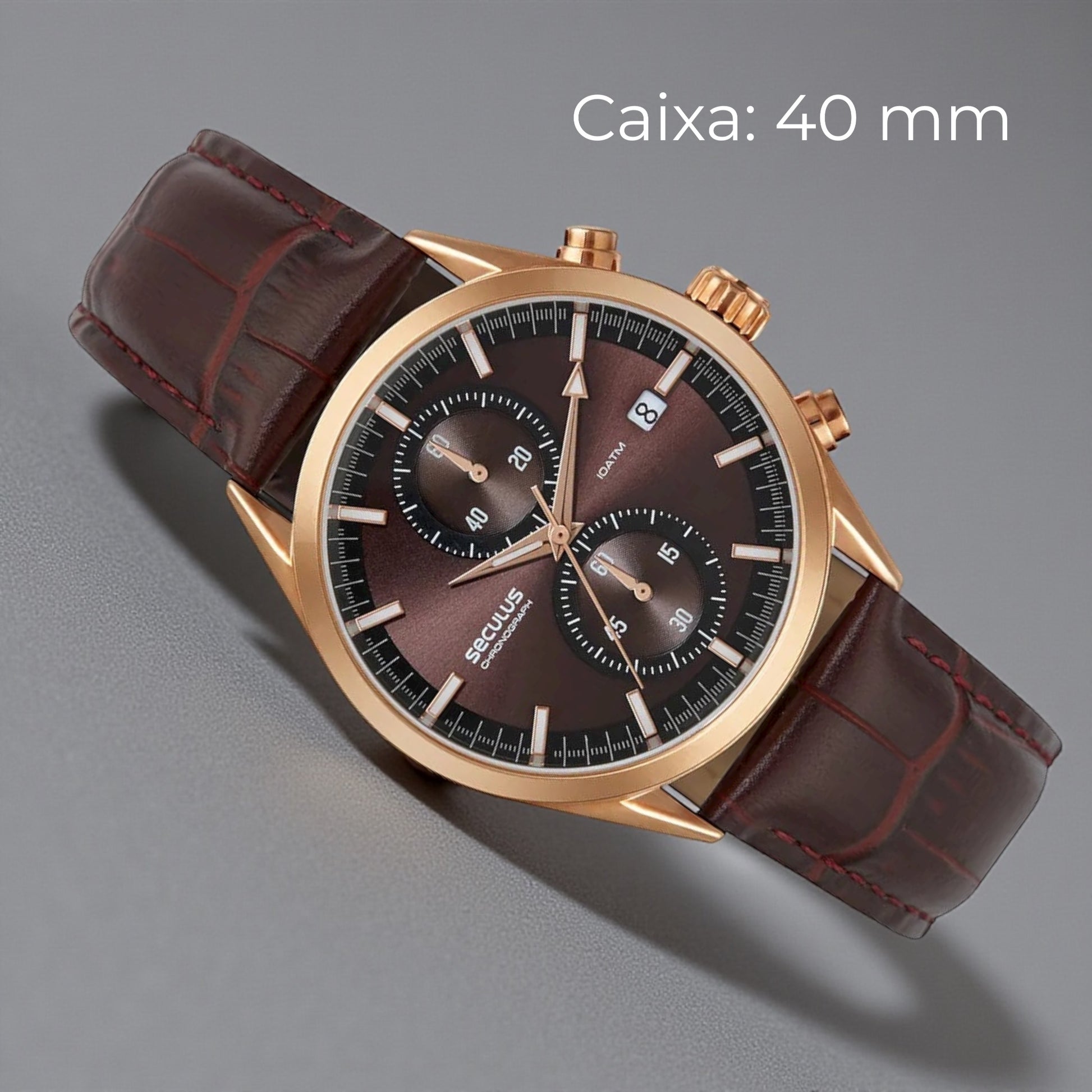 Relógio Masculino Cronógrafo Vidro Abaulado Couro Rosé