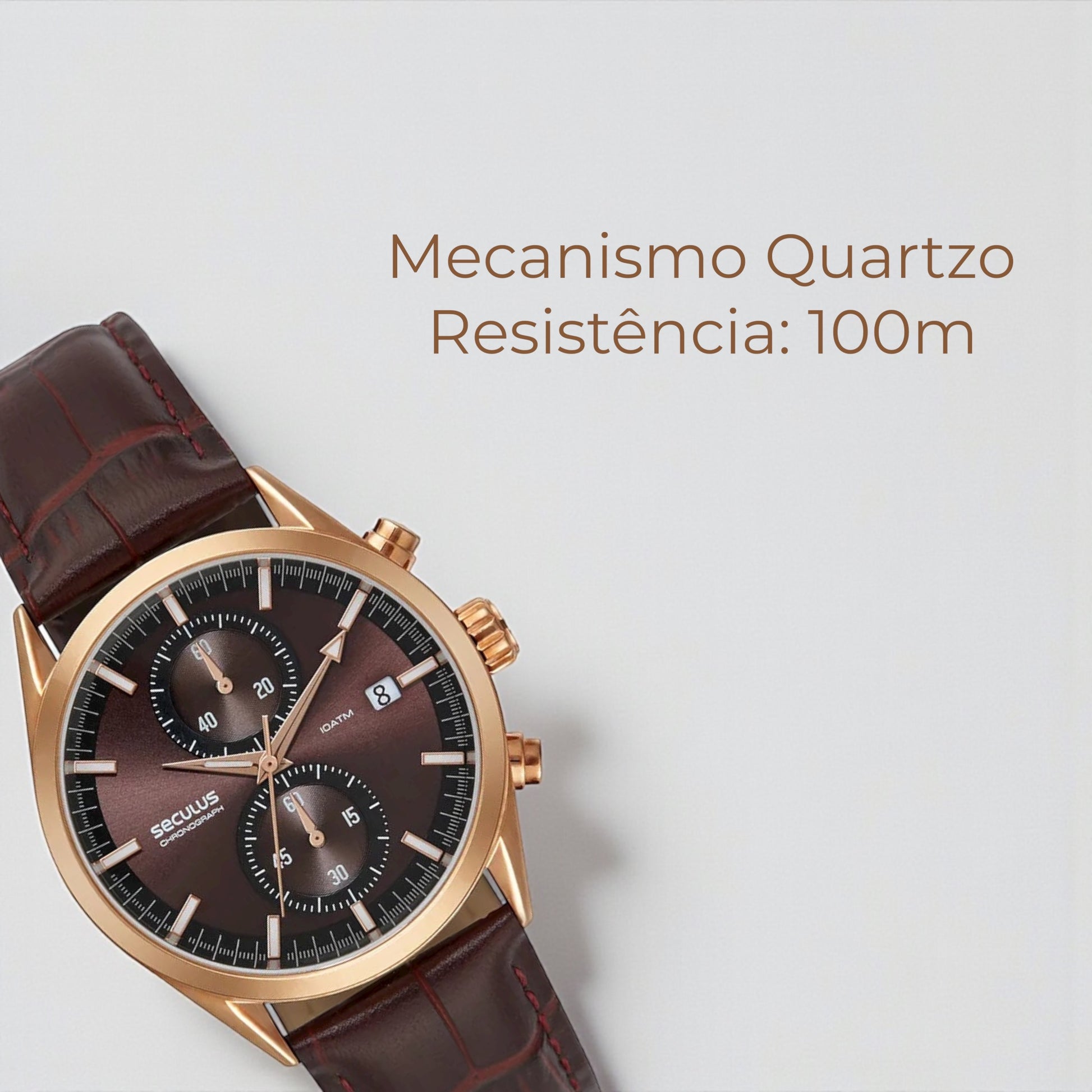 O Relógio Cronógrafo Rosé Couro Croco é mais do que um acessório — é uma declaração de estilo e confiança.