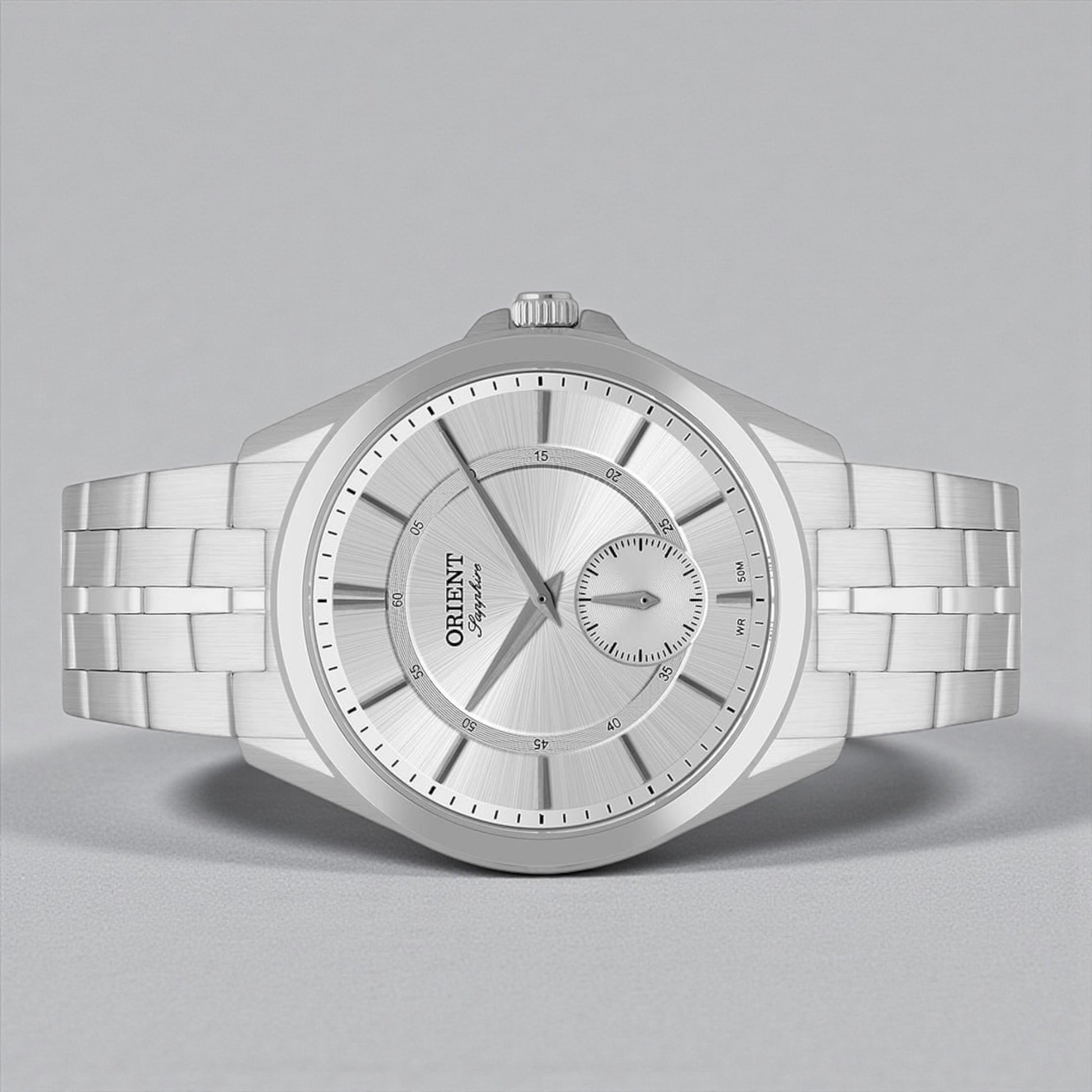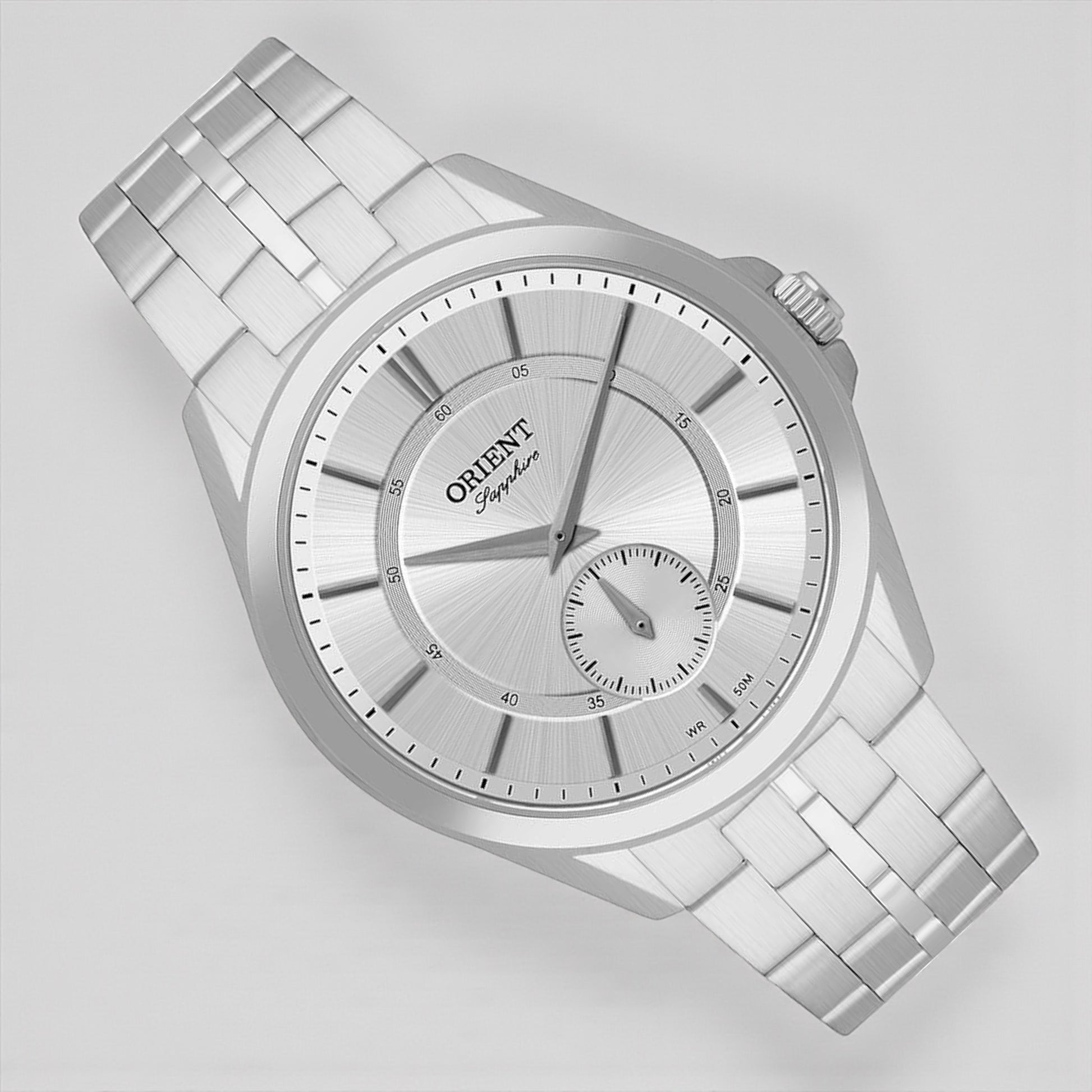 Seu mostrador prateado sunray reflete a luz com elegância, criando um visual refinado e versátil — perfeito tanto para o dia a dia quanto para ocasiões especiais. O acabamento metálico e o design minimalista evidenciam a tradição e o bom gosto característicos da marca ORIENT.