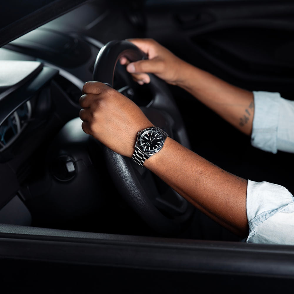 Equipado com o renomado movimento automático japonês Miyota Calibre 8205, o modelo conta com: